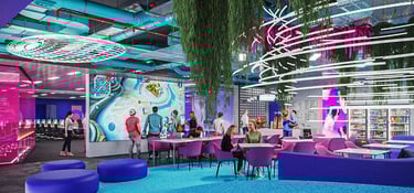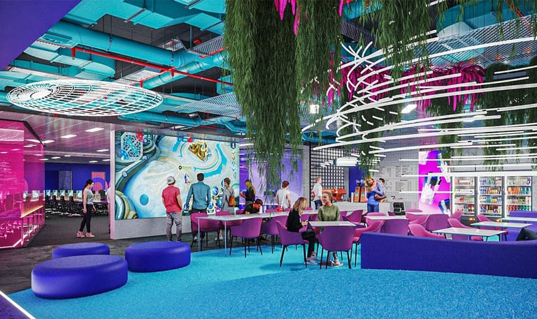 Saigon's esports team Spawn needed a competitive edge for their HQ. I crafted a sleek, neon-trimmed space to house high-performance PCs and ergonomic chairs in soundproof training zones. Collaborative areas with beanbag chairs and large screens foster teamwork. A custom LED wall keeps the team hyped for victory. This tech-driven haven fuels Spawn's competitive spirit.
