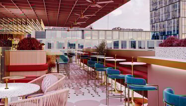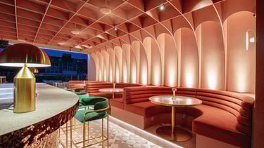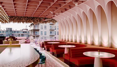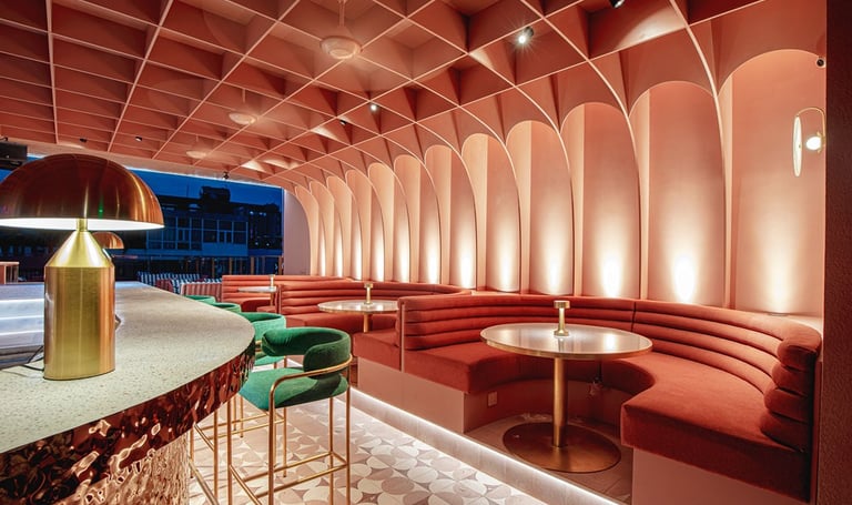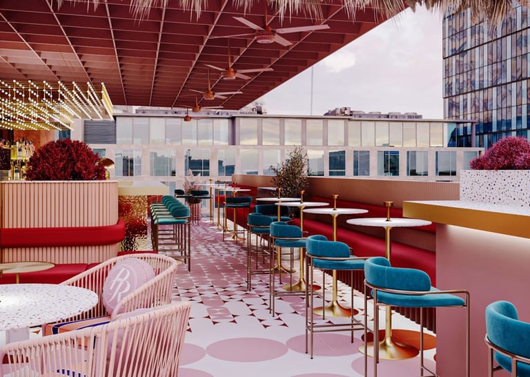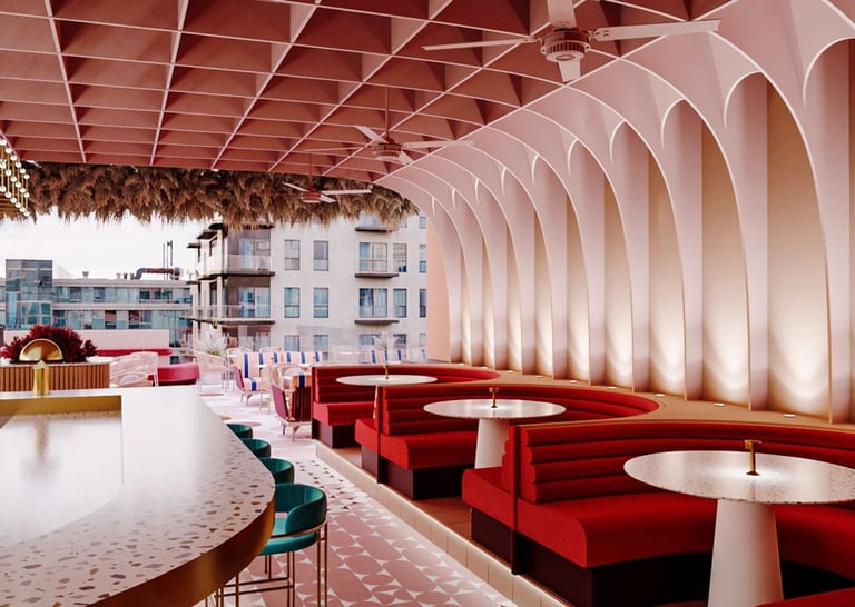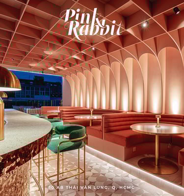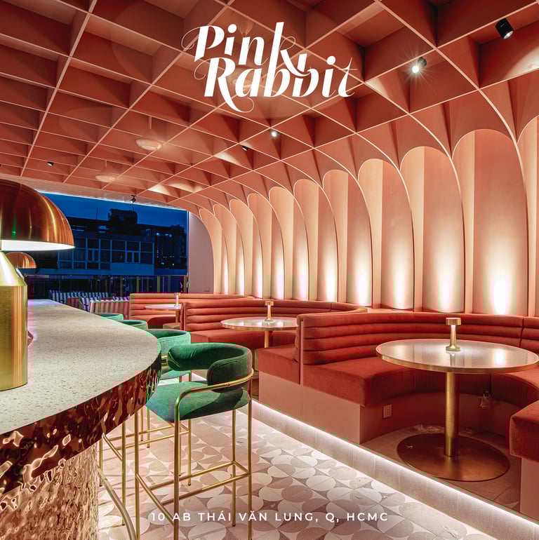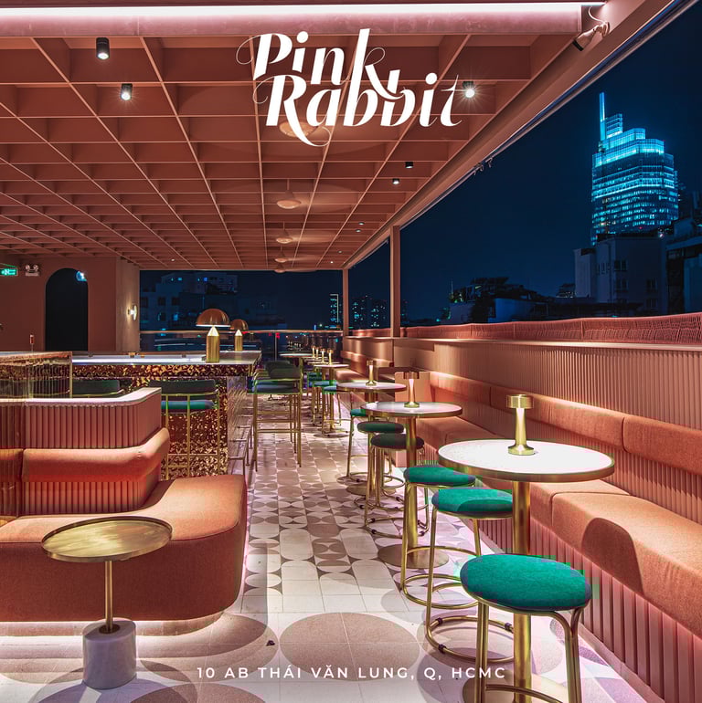 Pink Rabbit, a rooftop bar targeting hip young Saigonese, craved a playful yet chic interior. I envisioned sleek furniture and polished terrazzo balanced by pops of millennial pink. Neon Vietnamese slang and rabbit motifs would decorate the walls, while hanging greenery and a retractable roof would create a fun, Instagrammable escape.